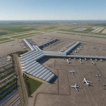 O projeto inclui uma cidade planeada em vários milhares de hectares ao redor do local do aeroporto, com centros empresariais, hotéis e instalações de conferências. Este desenvolvimento circundante visa criar empregos e impulsionar economicamente a região enquanto serve como centro de serviços para viajantes.