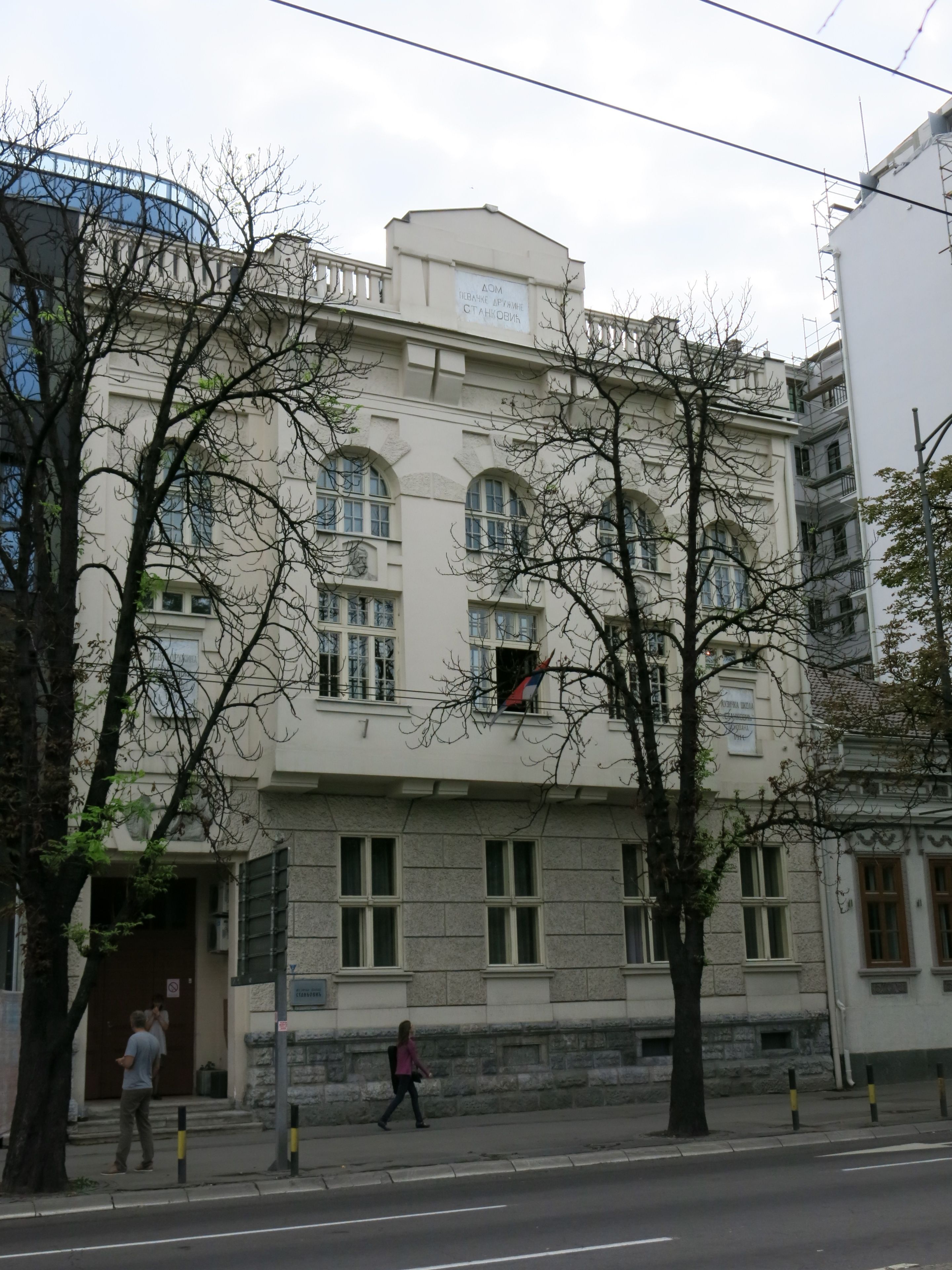 A Escola de Música Stanković ocupa um edifício de três andares com janelas arqueadas e relevos decorativos no estilo Art Nouveau de Belgrado.