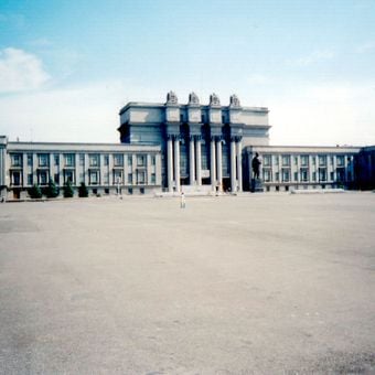 O atual palácio da cultura substituiu a catedral original e tornou-se um símbolo da transformação da era soviética do local durante o século vinte. Essa mudança mostra como o propósito da praça evoluiu de um centro religioso para um lugar de cultura e entretenimento públicos.