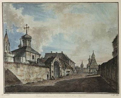 Ограда с двумя воротами между Большим дворцом и Оружейной палатой (Тверской)