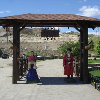 O local incorpora numerosas esculturas representando a herança cossaca, personagens do folclore russo e elementos tradicionais como a cerimônia do pão e sal.