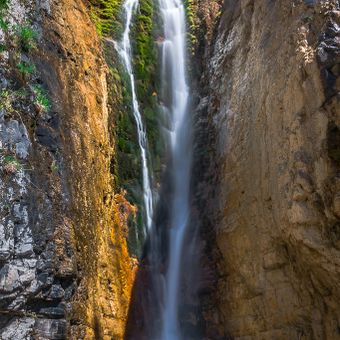 Фуртоугский водопад, Cachoeira montanhosa próxima à vila de Furtoug no Desfiladeiro Dzheyrakh, Inguchétia, Rússia