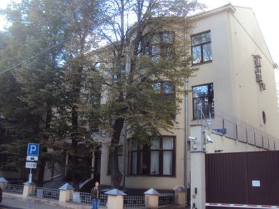 A estrutura incorpora secoes de dois anteriores edificios de companhias de seguros, com instalacoes subterraneas que foram adaptadas para operacoes de seguranca durante o periodo sovietico. Essas camaras ocultas abaixo do nivel da rua eram integrais as operacoes conduzidas deste local.