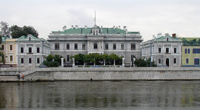 Sofiyskaya Embankment 14 é um edifício grandioso nas margens do rio Moskva com uma fachada elaborada do final do século 19. A estrutura combina elementos construtivos russos com influências europeias e exibe uma disposição simétrica com ornamentos intricados em suas paredes externas.