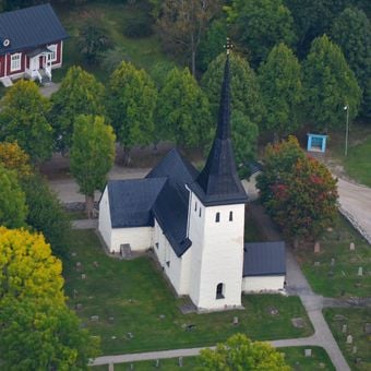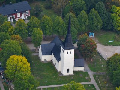 A Igreja de Sånga localiza-se na ilha Färingsö próxima ao Palácio Svartsjö, com uma alta torre construída em 1730 e janelas ampliadas.