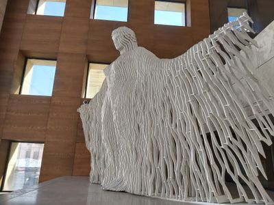 A obra traduz uma técnica de dobradura de papel em forma de metal, criando diferentes efeitos visuais dependendo de onde você fica e como a luz incide sobre ela. Apesar deste design intricado, toda a estrutura pesa cerca de 4,5 toneladas, o que torna sua aparência delicada ainda mais impressionante.