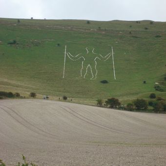 Esta figura de colina fica na encosta de Windover Hill perto de Wilmington em East Sussex e mostra um contorno humano segurando dois bastões longos. Toda a forma mede cerca de 69 metros de altura e aparece como uma linha branca contra a relva quando vista à distância.