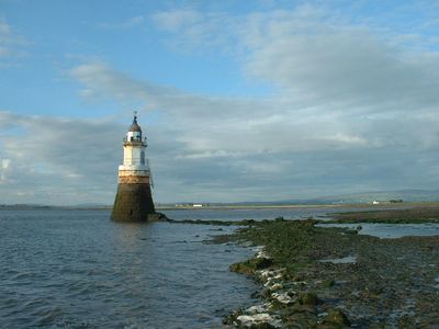 Plover Scar Lighthouse, Farol marítimo na entrada do estuário Lune em Lancashire, Inglaterra