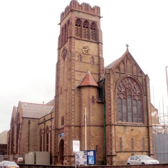 A estrutura atual substituiu uma igreja de 1836 projetada por John Braithwaite, com o novo edifício concluído em 1895 sob a direção do arquiteto Richard Knill Freeman.