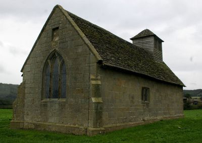A capela de pedra localiza-se em uma área remota de Shropshire, com traçado gótico simplificado na janela oriental e janelas retangulares no lado norte.