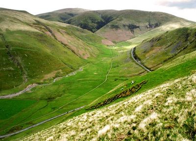 As Lowther Hills formam uma figura romboidal com ângulos agudos ao norte e sul, alcançando 732 metros no pico Green Lowther.