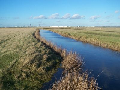 Os Pântanos do Norte de Kent formam uma vasta zona úmida com corpos d'água salobra, campos de pastagem e canais de maré. A área é caracterizada por uma rede intricada de canais de drenagem e estruturas de controle de água que gerenciam água doce e salgada.