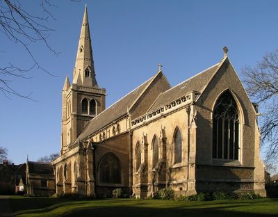 Henry Isaac Stevens projetou a igreja em 1855, concluída em 1856 ao custo de 8.000 libras, financiada principalmente pelo legado de Gally Knight.