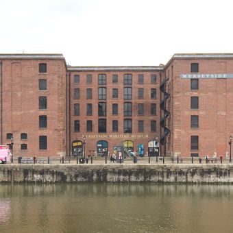 O Museu Marítimo de Merseyside exibe extensas coleções de artefatos navais, modelos de navios e equipamentos marítimos em um armazém restaurado.