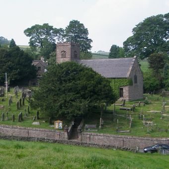 A porta do sacerdote conserva uma verga original da igreja de 1647, e o cemitério abriga o túmulo de um soldado do South Wales Borderers.