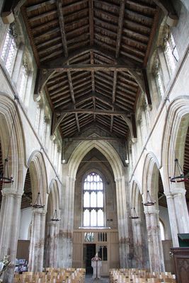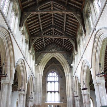 A construção da igreja começou em 1300, marcando a transição arquitetônica do estilo românico para o gótico na Inglaterra.