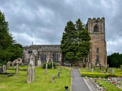 Church of St Lawrence and Coffin Lids and Benches on South Side, church in Staffordshire Moorlands, UK