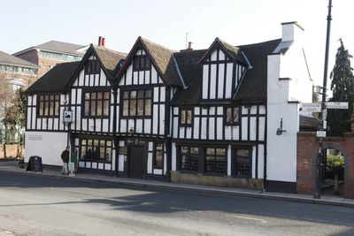 The Black Swan ocupa um edifício de três andares com uma seção central em estrutura de madeira e primeiro andar em balanço de 1560.