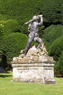 Statue Of Hercules At E Of Top Terrace In Powis Castle Gardens, statue in Welshpool, United Kingdom