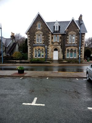Construído em 1873, esta instituição financeira surgiu durante um período de desenvolvimento significativo em Portree quando o centro mudou para Somerled Square.