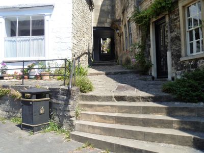 Section Of Elevated Pavement In Front Of No 21, Plus Wall Running To Left, And Steps With Pathway Leading North Between No 21 And Nos 23 And 24, building in Bradford-on-Avon, Wiltshire, UK