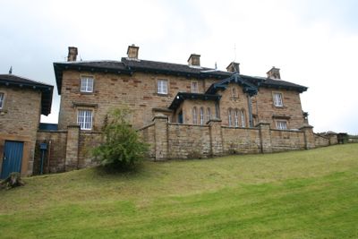 1 and 2 Daisy Bank, and attached wall and outhouse, house in Edensor, Derbyshire Dales, Derbyshire, UK