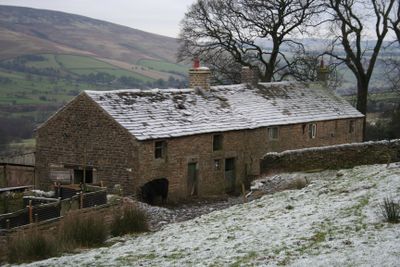 Hollins Farmhouse and attached barn, Grade II listed farmhouse in Edale, High Peak, Derbyshire, UK