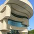 O edifício de calcário apresenta paredes curvas com superfícies ásperas que lembram as formações rochosas do sudoeste americano.