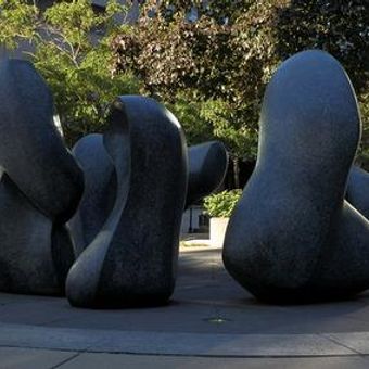 A escultura Family apresenta uma forma monumental em granito que representa as conexões humanas através de formas e texturas abstratas.
