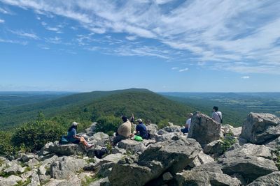 Hawk Mountain é um santuário de aves na Pensilvânia com florestas, campos e áreas de observação em suas terras protegidas. Vários trilhos atravessam diferentes habitats, oferecendo vistas de vários pontos de observação pela propriedade.