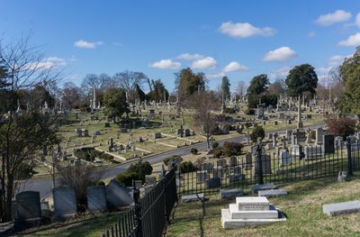 A seção Círculo dos Presidentes apresenta monumentos em estilo gótico que marcam os locais de descanso de importantes figuras históricas americanas.