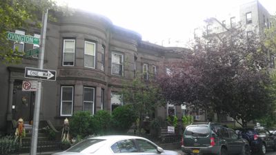 A coleção abrange vinte edifícios residenciais ao longo da Avenida Ovington, com casas geminadas de arenito e fachadas curvas características.
