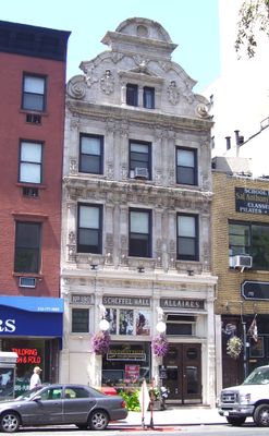 Scheffel Hall e um edificio de quatro andares com arquitetura renascentista alema localizado na Terceira Avenida em Gramercy Park, Manhattan. A fachada inteira exibe um revestimento de terracota detalhado que mostra a abordagem de projeto alemã elaborada.