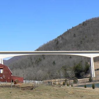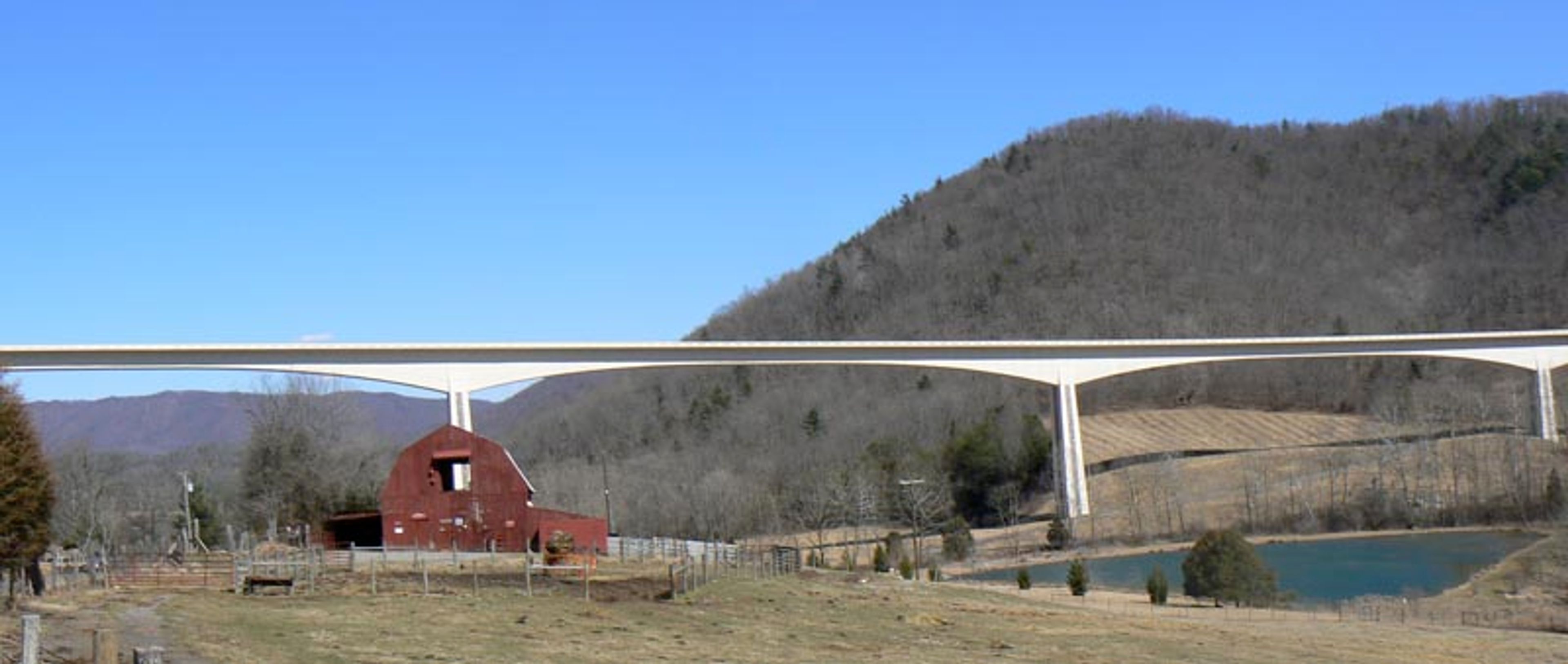 A Ponte Wilson Creek estende-se por 605 metros sobre Wilson Creek com cinco vãos suportados por quatro pilares cônicos a 53 metros de altura.