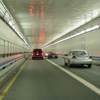 A ponte-túnel Hampton Roads estende-se por 5.6 quilômetros através do porto, conectando Norfolk a Hampton por uma combinação de pontes e passagens submarinas.
