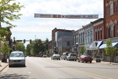 O Main Street Historic District em Milan abrange vários quarteirões ao longo de East Main Street, West Main Street e Park Lane com edifícios em estilo Renaissance Revival. As estruturas datam dos anos 1840 até o início do século XX e exibem uma linguagem arquitetônica coerente.