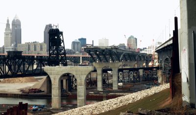 George V. Voinovich Bridges, Complexo de pontes de transporte em Cleveland, Estados Unidos.
