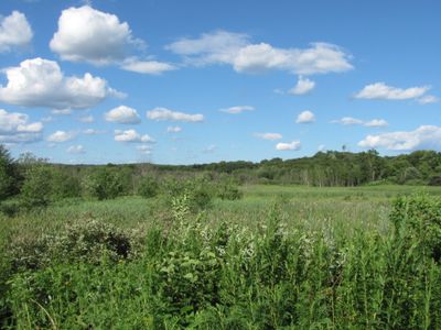 Arlington's Great Meadows abrange 183 acres de terra natural com planícies pantanosas, terras altas arborizadas e uma rede de trilhas para caminhadas.
