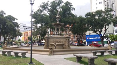 Chafariz da Praça da Matriz, fonte em ferro fundido, com ricos detalhes arquitetônicos, instalado em praça no Centrpo de Manaus, Amazonas