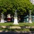 O monumento central, concluído em 1897, exibe figuras alegóricas em mármore representando a História através de uma mulher alada sentada sobre livros.