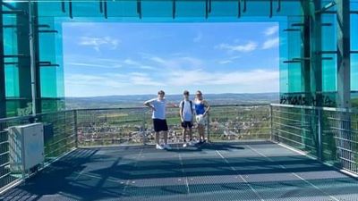 Uma subida estreita de 156 degraus leva à plataforma Jahrtausendblick, oferecendo vistas panorâmicas sobre a região de Weserbergland e o campo circundante. Este ponto de vista distinto era parte do apelo original do parque e continua sendo uma de suas características definidoras.