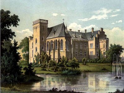 A propriedade foi documentada pela primeira vez em 1281 quando o Cavaleiro Dietrich Volenspit era seu dono e pagava uma pensão ao Mosteiro de Welver. No século 19, o mestre da catedral de Colônia Vinzenz Statz ampliou o edifício entre 1855 e 1885 adicionando uma capela e uma torre à seção barroca.