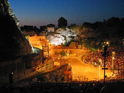 O festival foi fundado nos anos 1950 e se baseia em romances de aventura de um autor alemão cujas obras se tornaram mundialmente famosas. Desde sua fundação, o espetáculo estabeleceu Bad Segeberg como um destino para essas produções teatrais particulares.