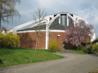 Concluída em 1954, a igreja representa importantes inovações arquitetônicas do pós-guerra pelos arquitetos Dominikus Böhm e seu filho Gottfried Böhm.