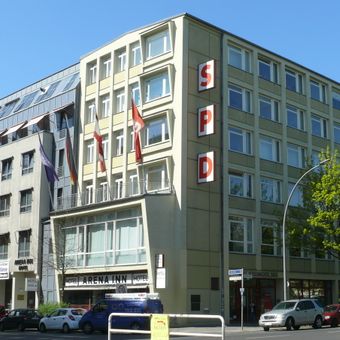 A Kurt-Schumacher-Haus é um edifício de concreto em Berlin-Mitte distinguido pelo seu balanço proeminente no segundo andar. Os espaços de conferência possuem amplas janelas e áreas abertas projetadas para usos variados.