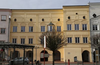 Ehemals Bezirksamt, dann Landratsamt, jetzt staatliches Vermessungsamt, breiter dreigeschossiger Bau, am zweiten Obergeschoss flacher polygonaler Erker, erdgeschossige Lauben mit Kreuzgratgewölben und Gurtbögen, Mitte 16. Jahrhundert, Durchfahrt mit Stichkappentonne, Fassade mit frühbarocken Gliederungen, 2. Hälfte 1