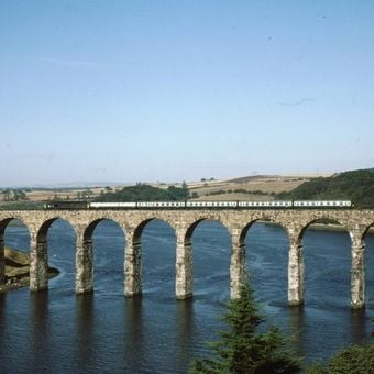 A Royal Border Bridge é uma estrutura ferroviária que atravessa o rio Tweed em Berwick-upon-Tweed, abrangendo o vale abaixo com seus grandes arcos. A construção de pedra foi projetada para transportar trens entre cidades em uma rota principal.
