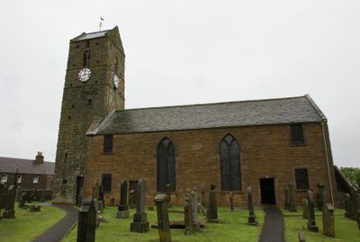 A igreja de pedra apresenta uma torre normanda com elementos arquitetônicos do inglês primitivo, incluindo arcos pontiagudos e pilares ornamentados.