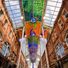 O centro reflete o passado têxtil de Leeds através de detalhes em terracota branca e tijolo vermelho visíveis nos corredores. Esses materiais lembram o trabalho artesanal de épocas anteriores e moldam a sensação do lugar enquanto o atravessas.