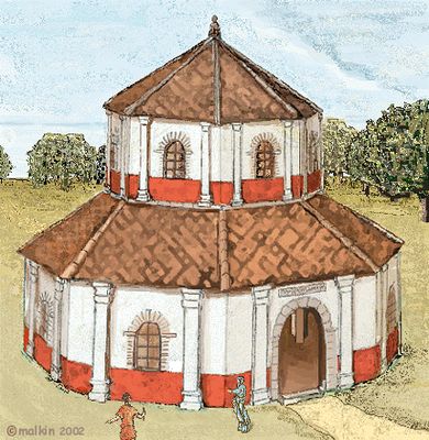 A estrutura octogonal dupla do templo apresenta um pórtico exterior de 17 metros de diâmetro e um santuário interior de 10 metros com paredes de um metro.